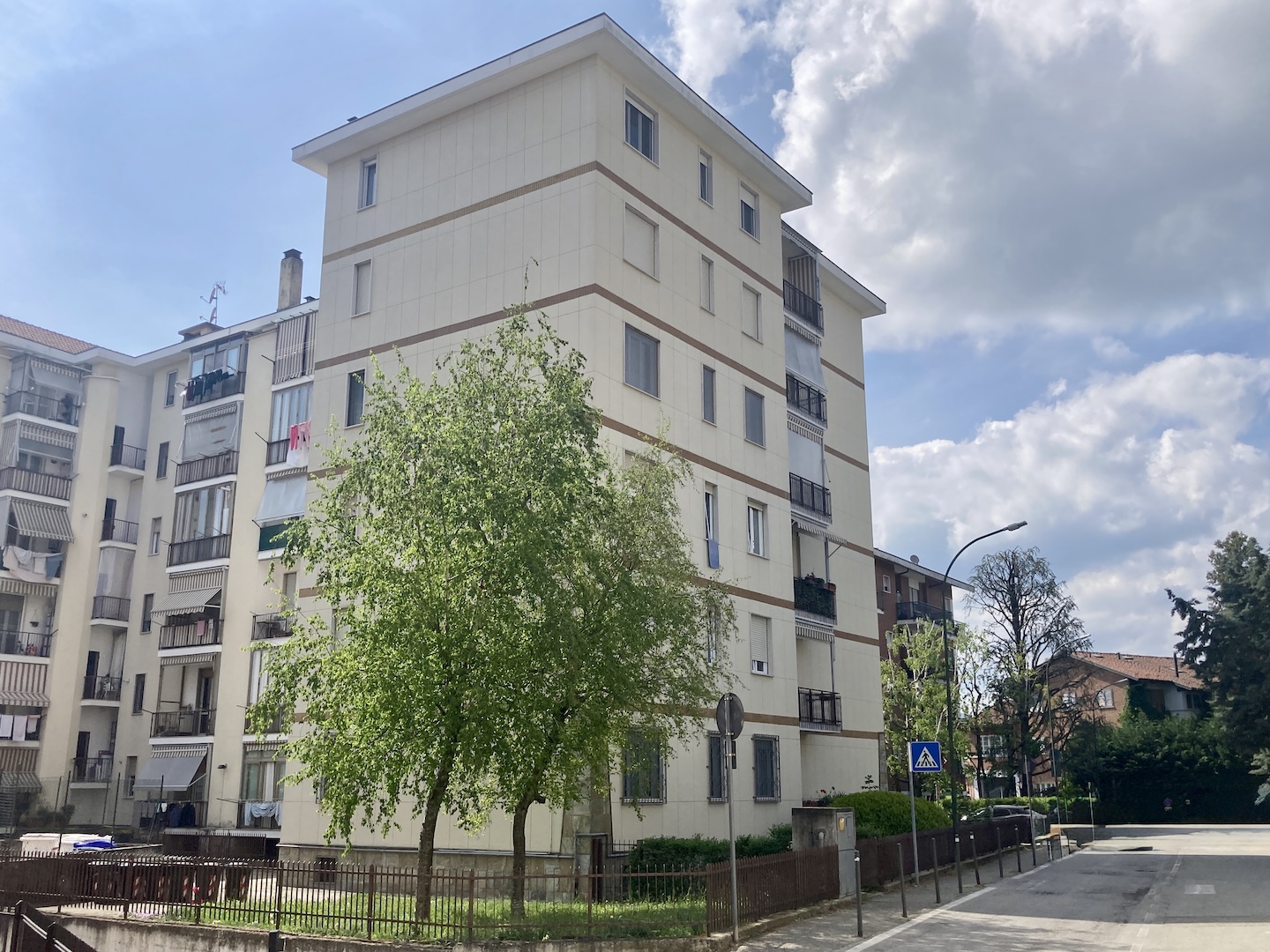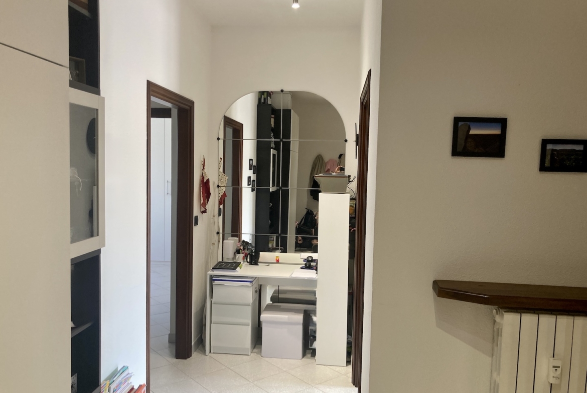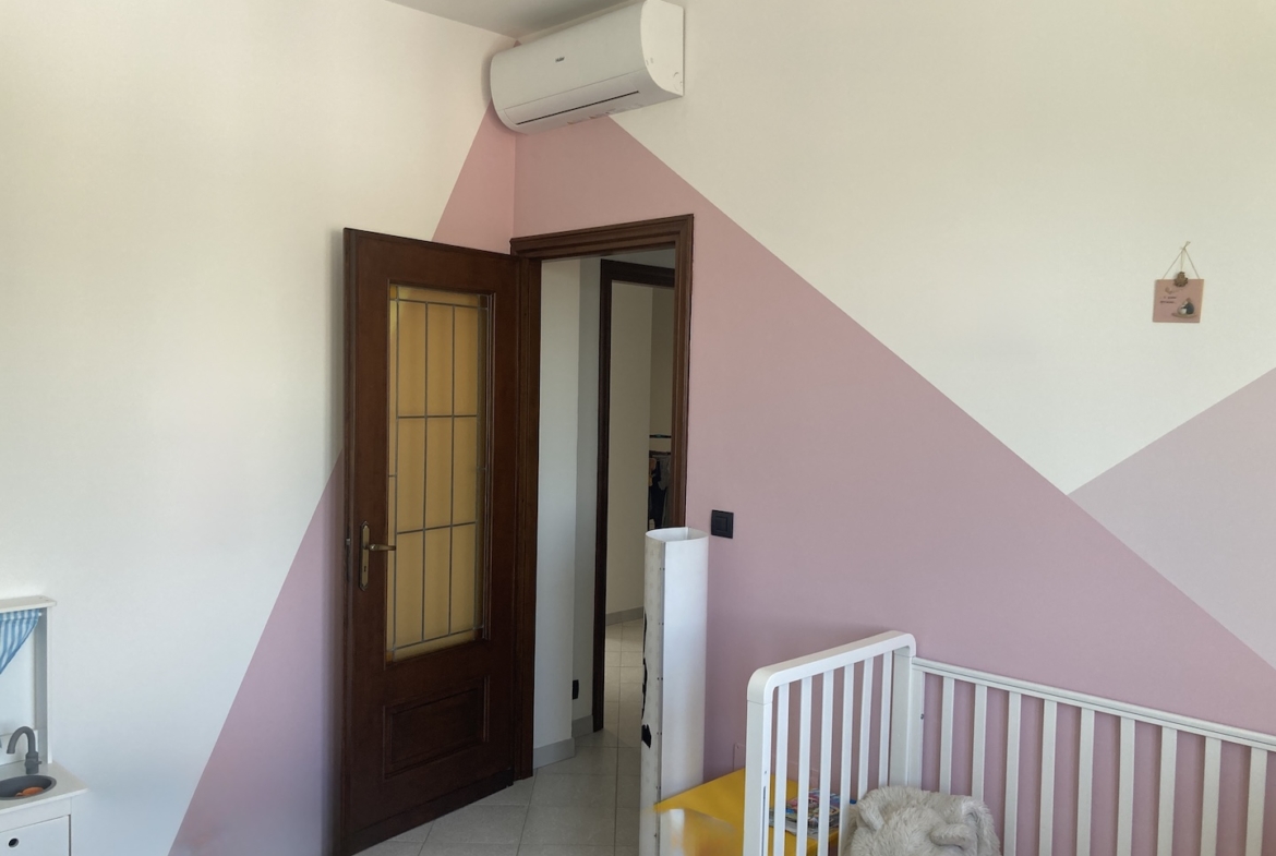 Appartamento ultimo piano a Chieri in via Don Lorenzo Perosi. In condomio di 5 piani con ascensore costruzione dei primi anni ’70 in ottime condizioni strutturali, si vende appartamento angolare posto all’ultimo piano, ben esposto e da cui si gode di una bella vista sulla città. L’appartamento di Mq 90 c.a. è così composto: ingresso, soggiorno, cucinino, disimpegno, 2 camere da letto, bagno con doccia, ripostiglio, un balcone con affaccio sul cortile interno e un vano cantina posto nel piano seminterrato. L’appartamento è stato oggetto di totale ristrutturazione negli anni 89/90. Più recentemente, nell’anno 2021 sono stati installati nuovi serramenti in pvc con vetri doppi a camera, le zanzariere a tutte le finestre e la tenda esterna bivalente estate/inverno; inoltre sono stati coibentati i cassonetti dei serramenti. L’immobile è dotato di portoncino d’ingresso blindato, caldaietta a metano installata nell’anno 2023 per la produzione dell’acqua calda, tre climatizzatori, nei 3 vani principali (soggiorno, 2 camere). Il condominio è allacciato al teleriscaldamento e tutti i termosifoni sono dotati di termovalvole per una gestione più autonoma dei consumi. Il condominio è in posizione molto comoda ai servizi: scuola, fermata del bus per Torino e per Chieri centro, supermercati, negozi di prima necessità sono nelle immediate vicinanze. L’appartamento è molto luminoso e gode di una buona posizione. Cl.en.: in Rq